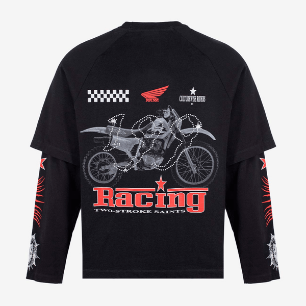 CULTUREWISE TWO STROKE SAINTS CAMISETA MANGA LARGA OVERSIZED RACING NEGRA
